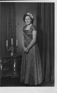 Nicht mal ein Jahrzehnt später ging Elisabeth, jetzt verheiratete Walldorf, mit dem selbstgenähten Kostüm als Seerose zum Ball. (Foto)