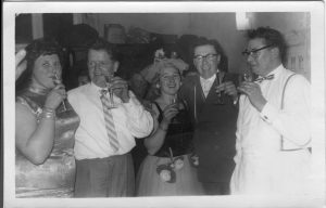 Kleider von der Stange – das gab es erst einige Jahre später. Und wie uns Elli Walldorf verriet, saßen die nicht so gut wie die maßgeschneiderte Garderobe, sie mussten hier und da von der Schneiderin noch angepasst werden. Auch die Fastnachtssitzungen des NCV, des Niedersaulheimer Carnevalvereins, fanden in der Sängerhalle statt. Brigitte Kerz hat noch einige Fotos von ihren Eltern von 1950 und von 1953.