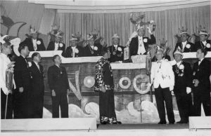 Was auf der Bühne nicht fehlen durfte: Prinzenpaar, Ritter Hundt und Elferrat! Zeitzeugen von damals sagen übereinstimmend, da sei in Saulheim mehr los gewesen wie in Meenz in damaliger Zeit. Die Saulheimer nutzten die Gelegenheit, zur Fastnacht alle und alles gesanglich, in Büttenreden und in Sketchen durch den Kakao zu ziehen, zur Gaudi der anwesenden Fastnachter.